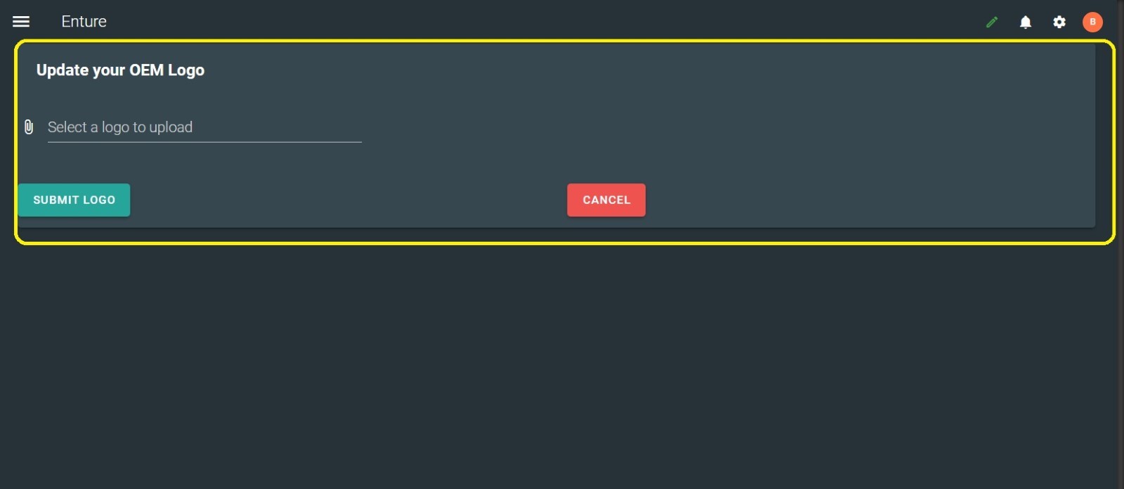 Once submitted, the OEM Logo will be displayed under the Enture Menus, as shown below:
