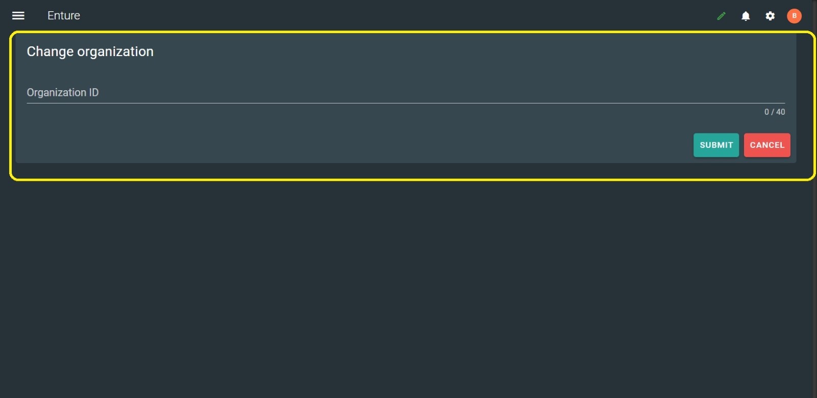 When you click “Change Organisation”, you will be required to enter the Organisation ID and then click the “Submit” button.