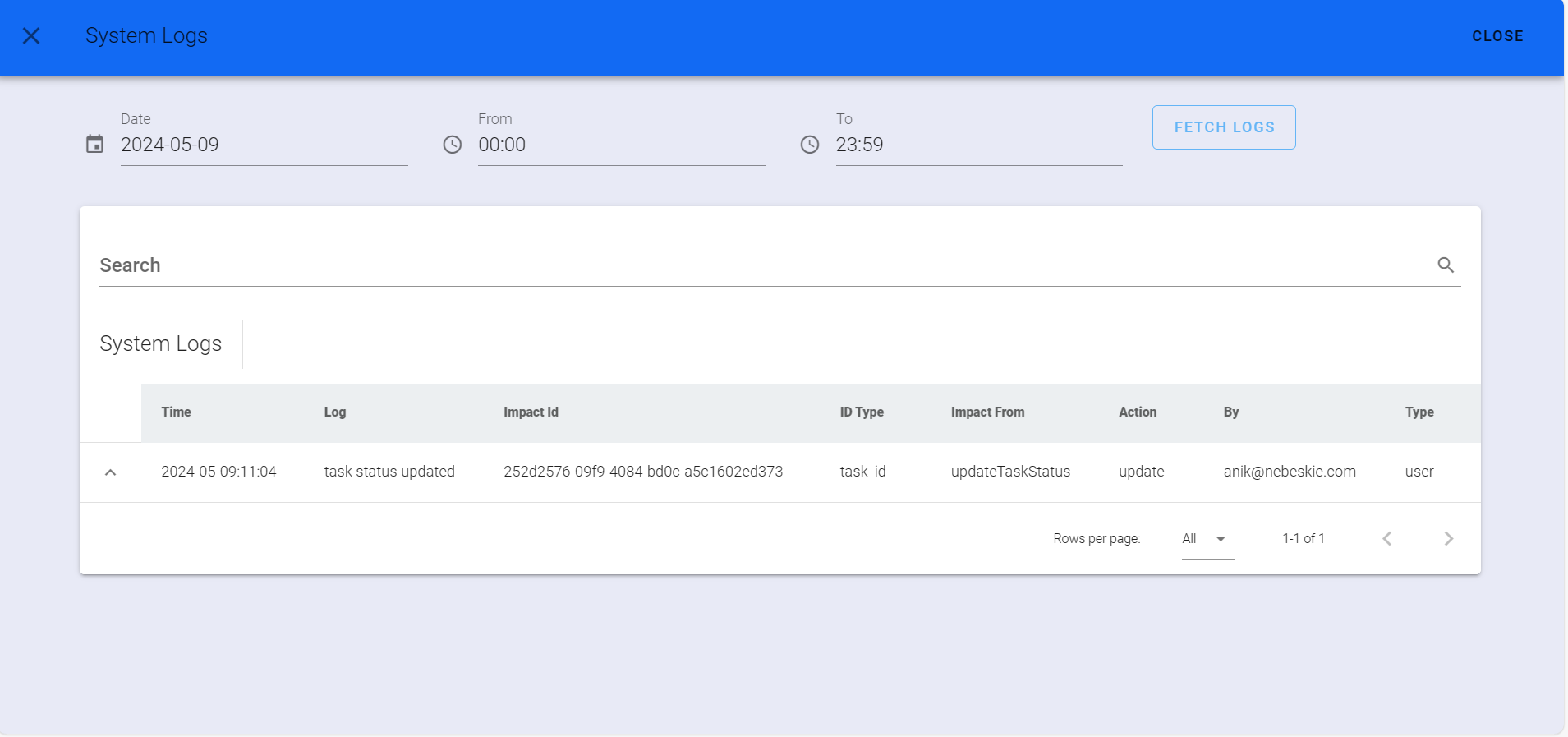 System logbook helps us to keep track of changes and their impact on the platform, along with the ID of the person who made the changes at a specific time.