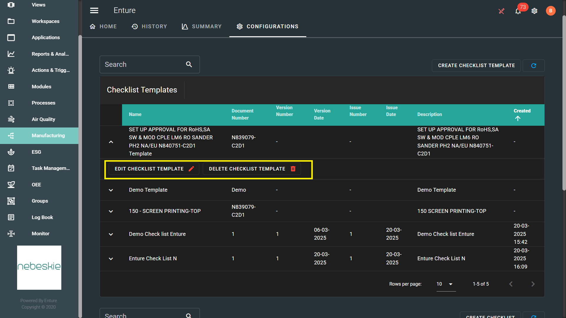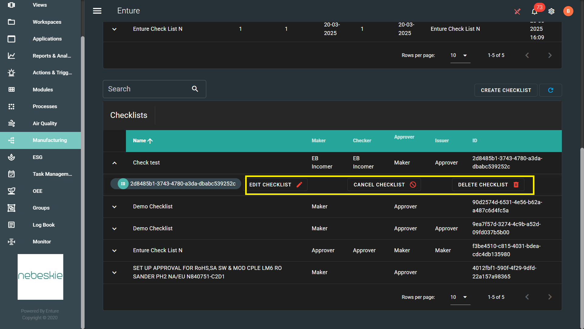 The Checklist feature in Enture allows users to create, assign, and track structured task lists for various operations. It helps ensure compliance, consistency, and efficiency across inspections, audits, maintenance, and routine tasks.