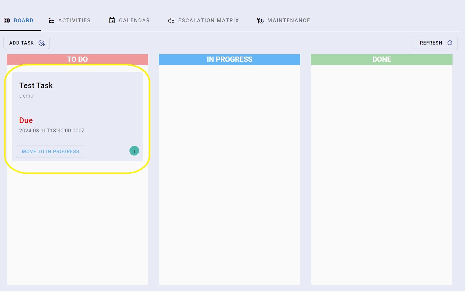 - Click āMOVE TO IN PROGRESSā to move the task to the In Progress board.