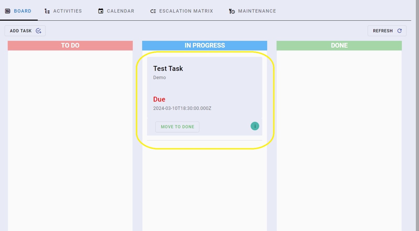 Once a task is added, it appears in the To Do board:
