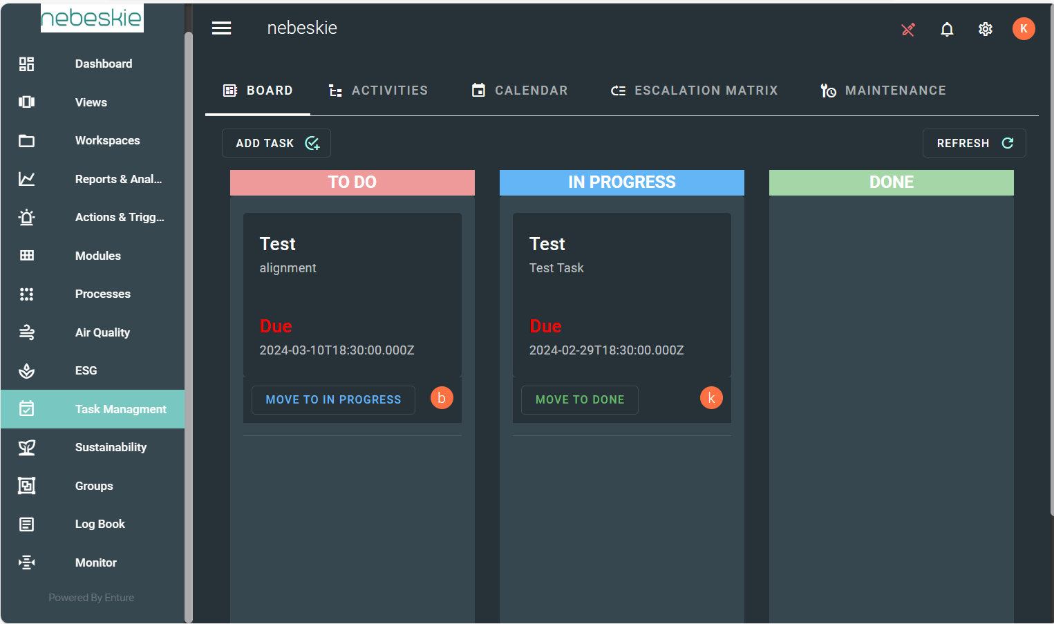 - Track task progress using the Board