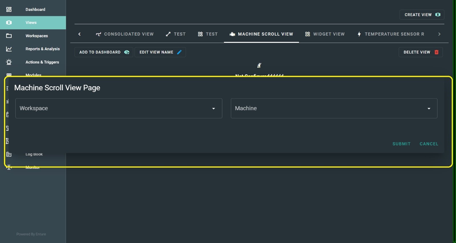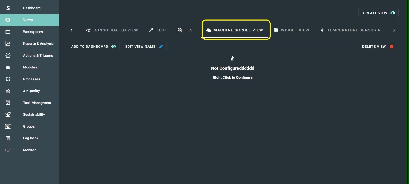 Once created, the Machine Scroll View will appear on the tab with the name you provided (e.g., “Machine Scroll View”).